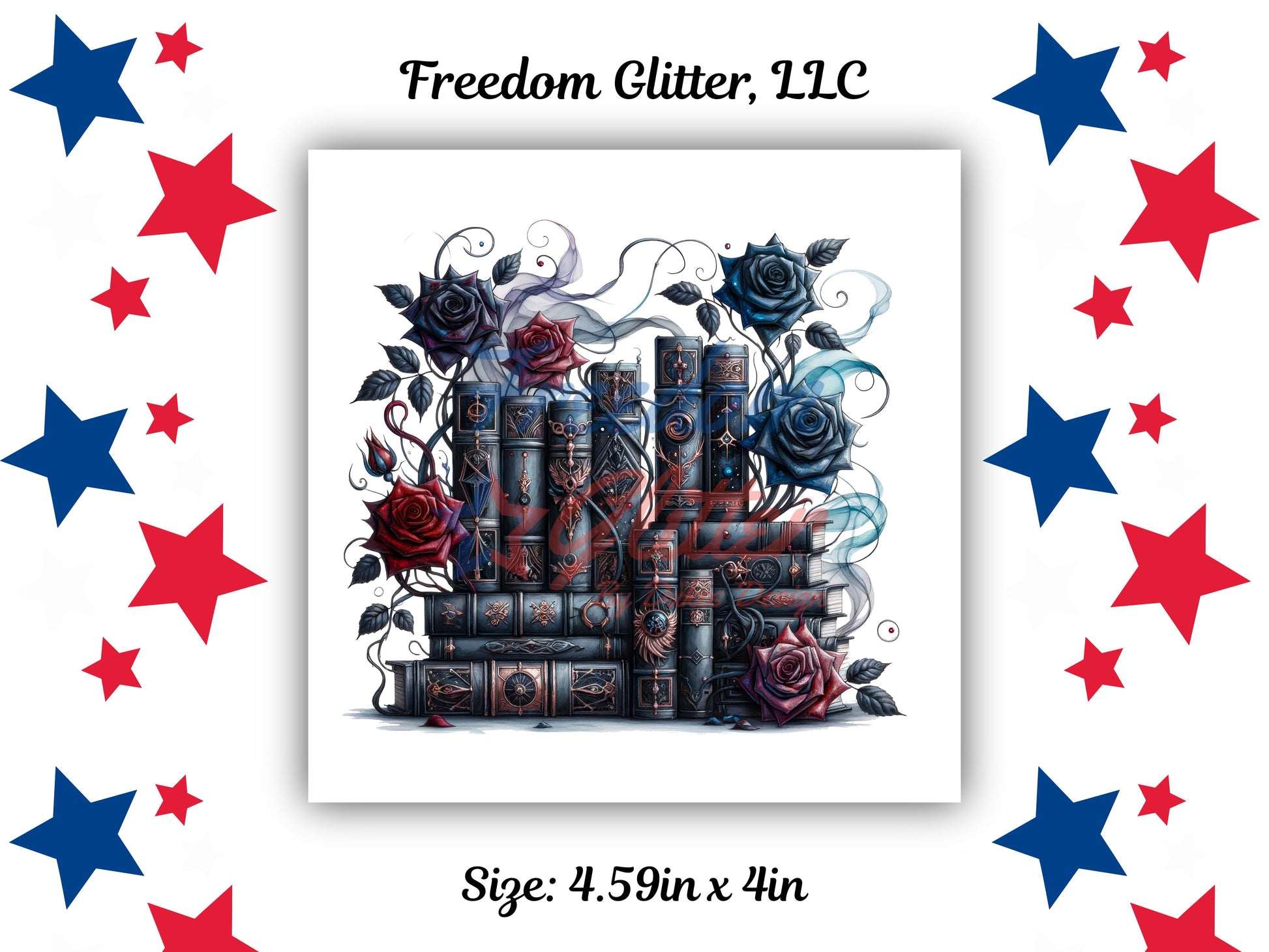 🖤Dark Romance Series – Dark Books & Roses 2 UVDTF Decal | 4.59in x 4in | Freedom Glitter, LLC
