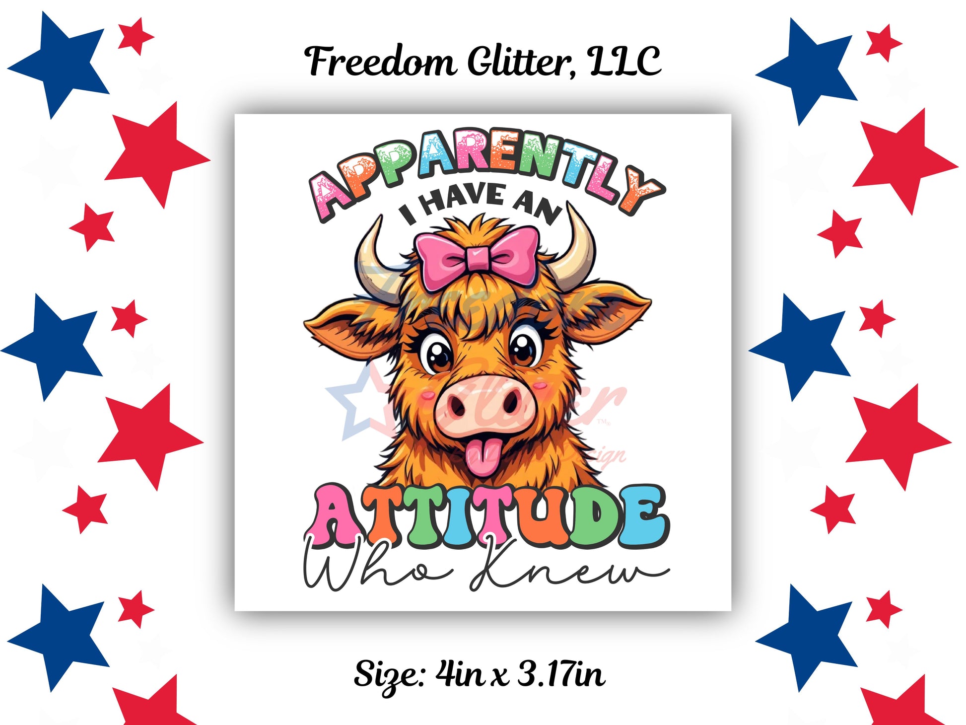 Show off your sassy side with this “Apparently I Have an Attitude” Highland Cow UVDTF Decal! Featuring a bright, colorful cow with a pink bow and playful expression, this fun design is perfect for anyone with a little moo-d and a lot of personality.