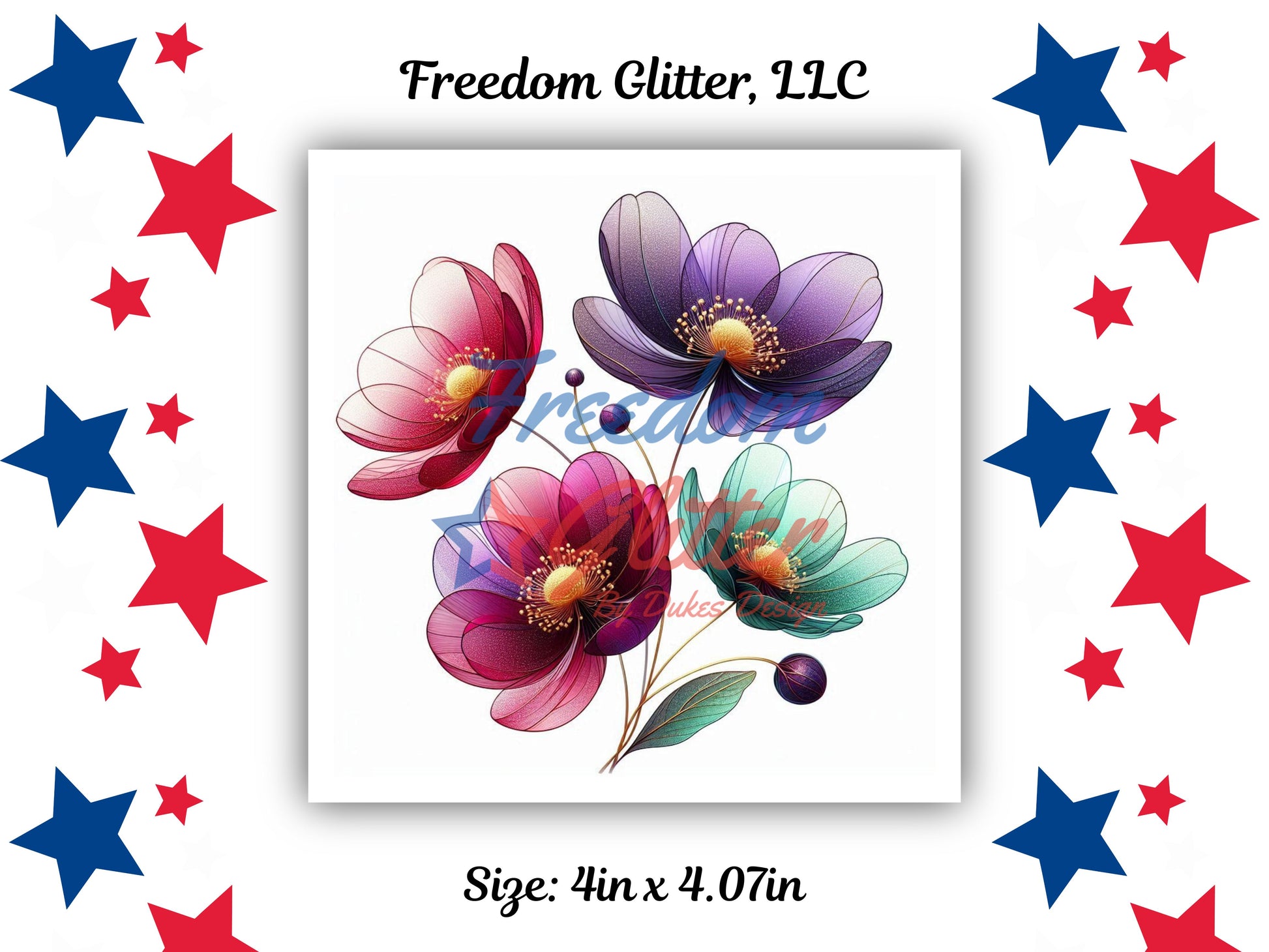Bring elegance and vibrant color to your creations with this Berry Bliss Floral UVDTF Decal. This stunning design features layered florals in rich berry tones, soft purples, and teal-green leaves, accented with delicate gold-style line details for a refined, artistic look. Perfect for adding a bold yet graceful touch to tumblers, cups, water bottles, notebooks, and other smooth surfaces.