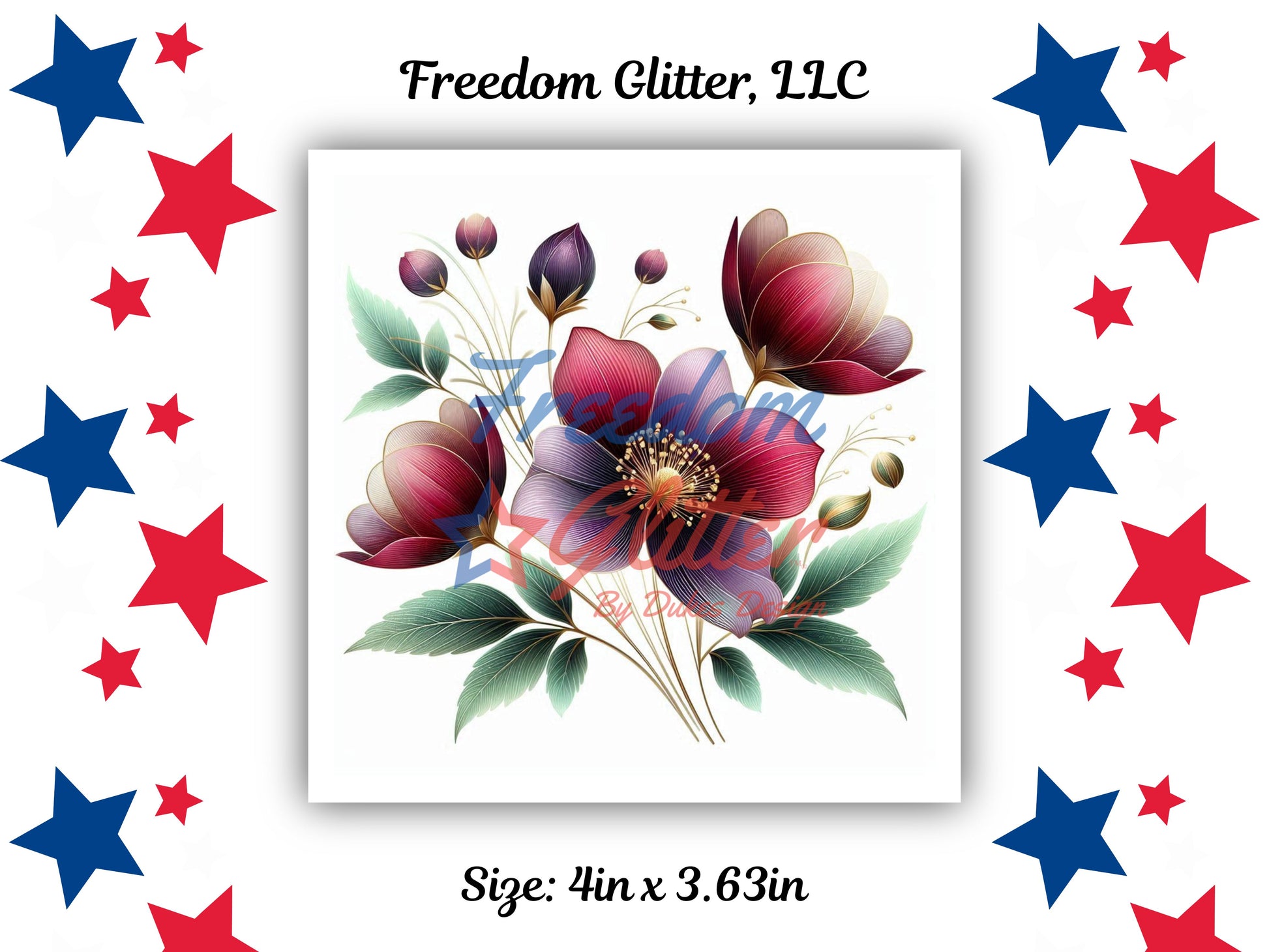 Bring elegance and vibrant color to your creations with this Berry Bliss Floral UVDTF Decal. This stunning design features layered florals in rich berry tones, soft purples, and teal-green leaves, accented with delicate gold-style line details for a refined, artistic look. Perfect for adding a bold yet graceful touch to tumblers, cups, water bottles, notebooks, and other smooth surfaces.